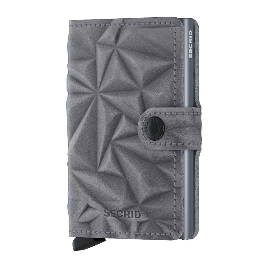 The sharp angular 3-D embossed lines of Secrid's Prism Miniwallet give this artisanal leather a distinctly modern feel. Designed in the Netherlands and made in Italy from European cowhide, this stunning wallet address a new era of technology by protecting both your privacy and your money. Each wallet includes the ultra-thin aluminum Cardprotector, which protects your RFID-enabled chip cards (e.g., credit and debit cards) from wireless theft and protects against bending and breaking. Slide cards into the Cardprotector, and with a simple pull on the tab your cards slide out in a convenient layered arrangement for easy selection. The interior of the wallets provides additional space for a few more cards, paper money, receipts, business cards, or coins. The Miniwallet has a snap closure to secure your valuables. All Secrid wallets are compact and guard against the reach of digital pickpockets.