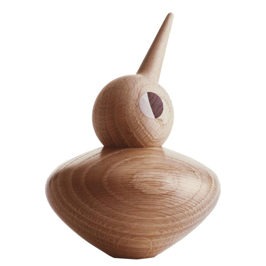 The entire expressive Bird family, designed by Kristian Vedel, has been re-introduced by ARCHITECTMADE. Vedel designed his family of birds - children, parents, and grandparents - back in 1959. Though only the small Bird was set in production, it quickly became one of the most successful Danish wooden products from the '50s. All of the birds are now handmade by a wood turner in Denmark who uses only high quality dark smoked and natural oak. By tilting their heads in virtually any direction, the Birds can express every frame of mind - happy, sad, curious, or alert. The bodies can be turned upside down, making it either a male or female.