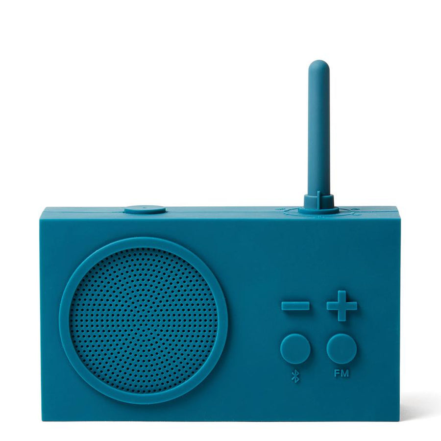 The Tykho 3 Bluetooth Radio and Speaker, designed by Marc Berthier for Lexon, is a rechargeable FM radio and speaker that lets you take your tunes with you. This version of the iconic Lexon radio incorporates a 3W Bluetooth speaker. With the Bluetooth capability, you can pair it with your devices to stream your playlists anywhere. The silicone coating makes this radio splash-proof, so it's as comfortable at the pool, lake, or beach as it is on your desk.
