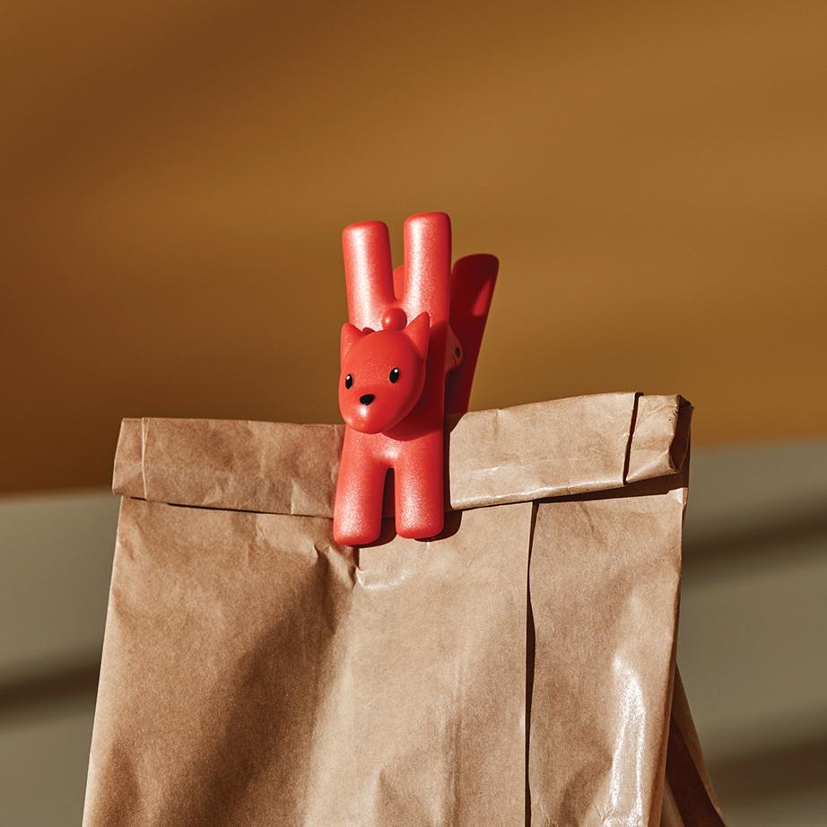 Created by Miriam Mirri for Alessi, the Lampo and Giampo Clip Sets of two are perfect for cat, dog, and design lovers. Charming and useful, Lampo the cat and Giampo the pup close packages and have a magnet, ideal for hanging reminders and notes.