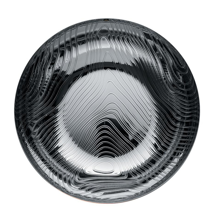 The warmth and texture of wood grain is reinterpreted in bright stainless steel in the Veneer Collection from Alessi. Designed by Patricia Urquiola, the fluid lines move on the surface of the objects, adding texture and dynamism to these kitchen and home accessories.