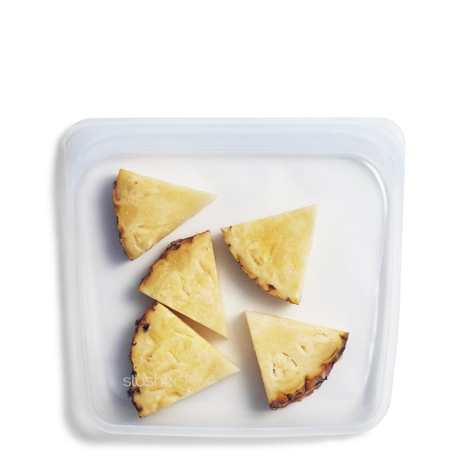 Designed to be an alternative to endless plastic bags and containers, Stasher is a leader in the plastic-free movement. Made of pure platinum food-grade silicone, the Stasher Storage Bags are a healthy alternative that's safe for people and the planet. They can be reused 3,000+ times and are durable, temperature resistant, and the pinch press seal guarantees against leaks. The non-porous surface inhibits bacterial growth. Choose a size for all of your needs. They're even TSA approved for carrying travel-sized liquids through airport security. Save money and the planet with this award winning, revolutionary storage bag.