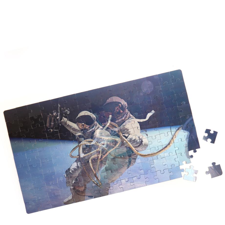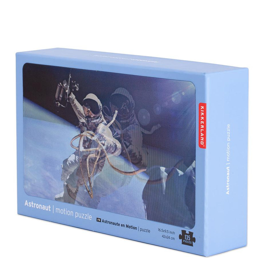 Enjoy an out-of-this-world experience when you piece together a Motion Puzzle from Kikkerland. When complete, these lenticular puzzles create an illusion of motion by showing a different image depending on the angle at which you view it. The 3D effect animates an astronaut floating in space or a lunar moonwalk.