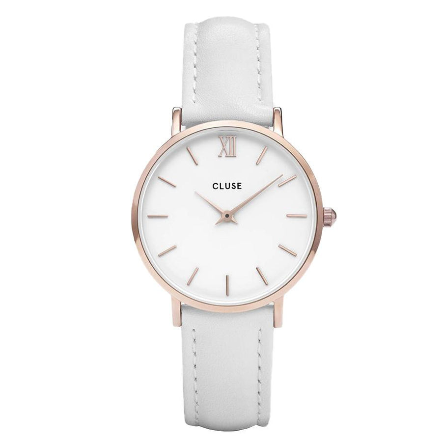 Suitable for everyday or special occasions, the simple and chic Cluse Minuit Watch completes any outfit. The warm rose gold coloured case and hands compliment the white dial and topstiched leather strap. Produced with attention and care, with a strong focus on materials and style, specialized watchmakers in their Amsterdam atelier maintain the high quality of Cluse watches. Minuit's delicate 33mm case will make a quietly classic statement on your wrist.
