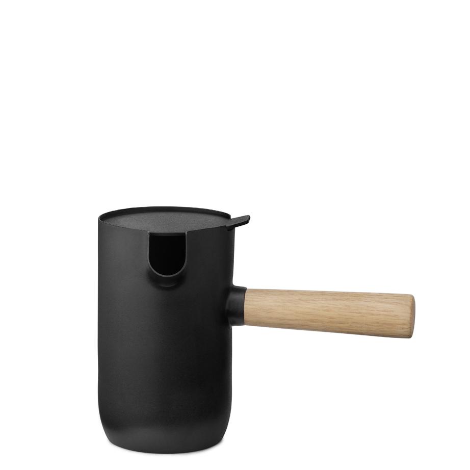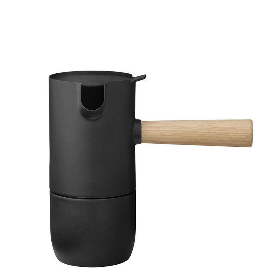 The Italian designers, Daniel Debiasi and Federico Sandri, created the Collar Coffee Collection for Stelton, reimagining the classic Italian stovetop espresso maker – or moka pot – with a Scandinavian feel. The two-part pot is made from stainless steel with a Teflon Coating for a soft touch and is accented by a long rubberwood handle. Make up to three cups of robust espresso and serve with the coordinating milk jug and sugar bowl.