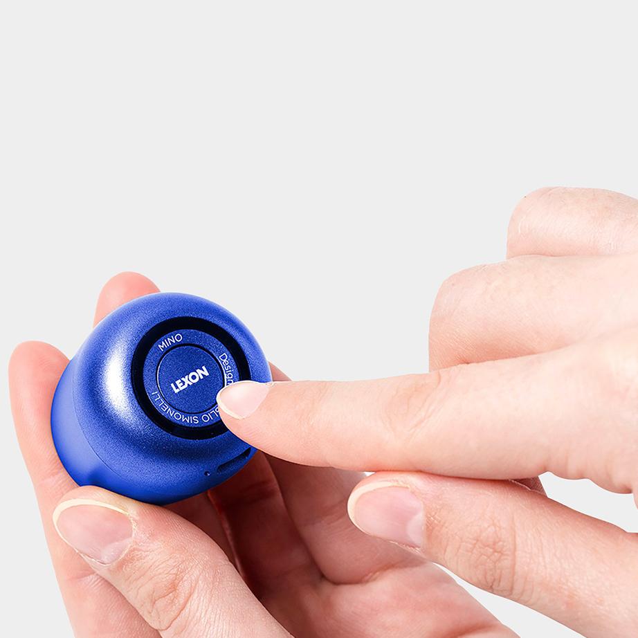 The Mino from Lexon is a pocket-sized Bluetooth speaker that delivers big sound. This small but powerful 3W speaker fits in the palm of your hand. When connected by Bluetooth to your phone you can set up selfies, start and stop recording videos, and answer calls using the button on the speaker's base. The speaker charges through a USB cable for three hours of music streamed from your devices. For stereo sound, Mino is pairable through TWS stereo technology. Designed by Andrea Quaglio and Manuela Simonelli, Mino's compact size, sleek design, and outstanding performance is the perfect audio companion to bring everywhere with you.